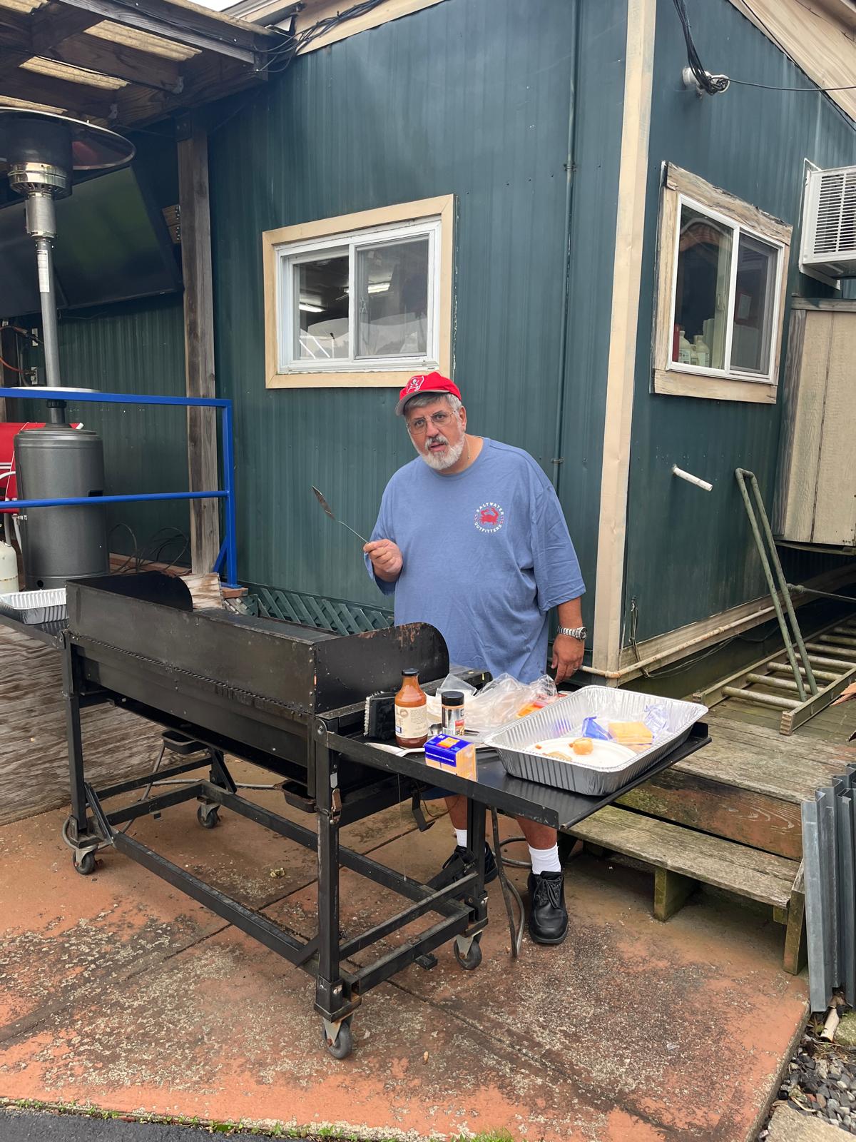 Grill Master Paul was kind enough to cook us some TASTY burgers & dogs!