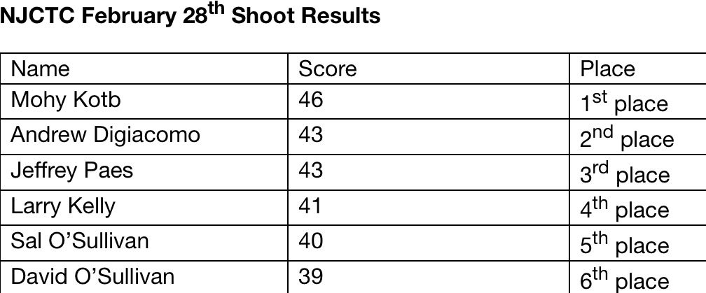 The cold grip of winter let up for an evening and our North Jersey Shooters took full advantage! Temperatures were well above freezing and the scores did not disappoint! John N was able to get us some delicious sandwiches from his food truck connection and they really hit the spot! Stay tuned to our website to see when the next shoot is! Remember day light savings is coming next weekend and the daylight will be longer making it even better for shooting!