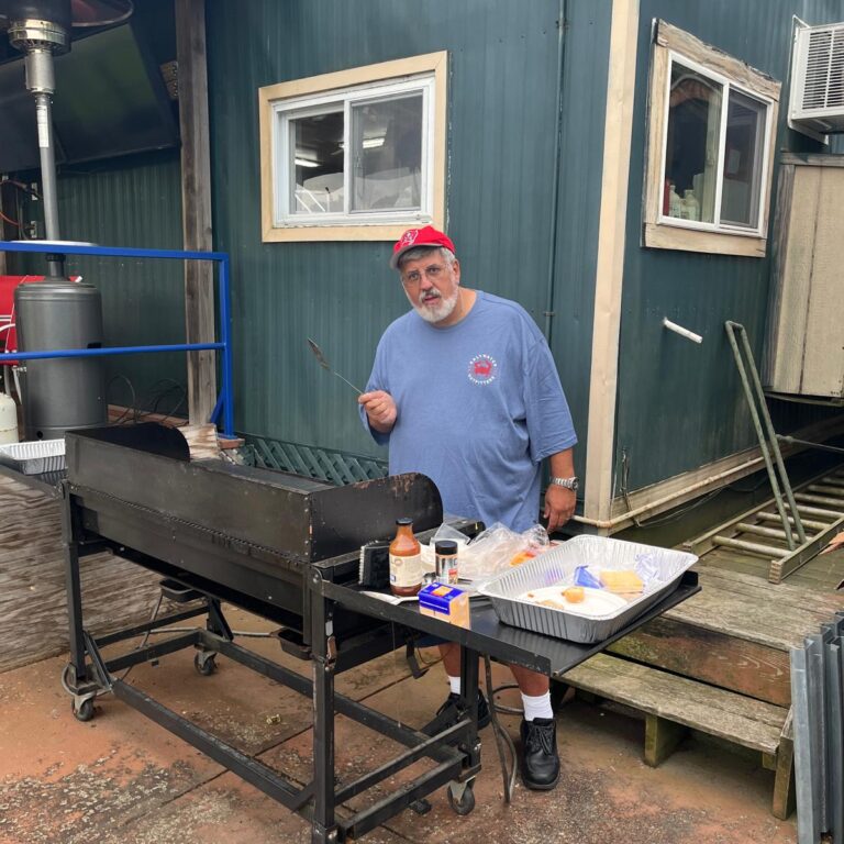 Grill Master Paul was kind enough to cook us some TASTY burgers & dogs!